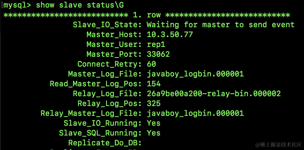如果这两个有一个不为 YES ,表示主从环境搭建失败,此时可以阅读日志,查看出错的原因,再具体问题具体解决。