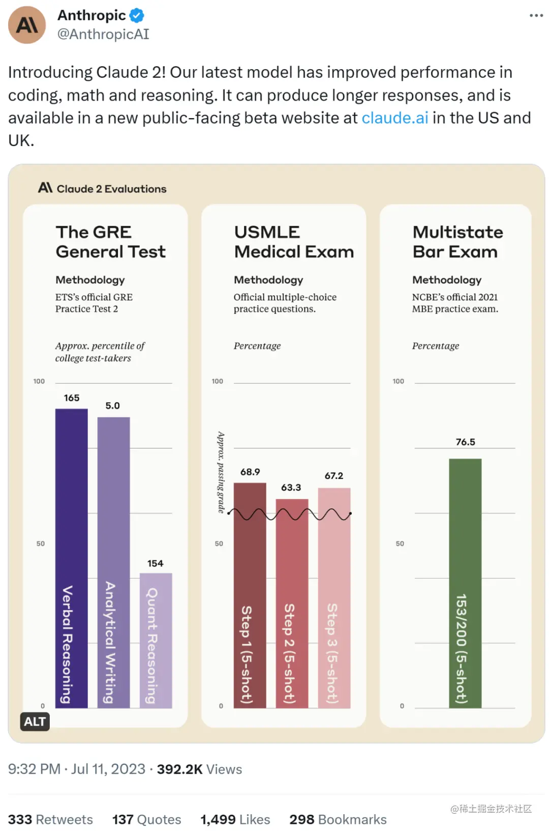 据介绍,Claude 2 在编写代码、分析文本、数学推理等方面的能力得到加强,并且可以产生更长的响应。