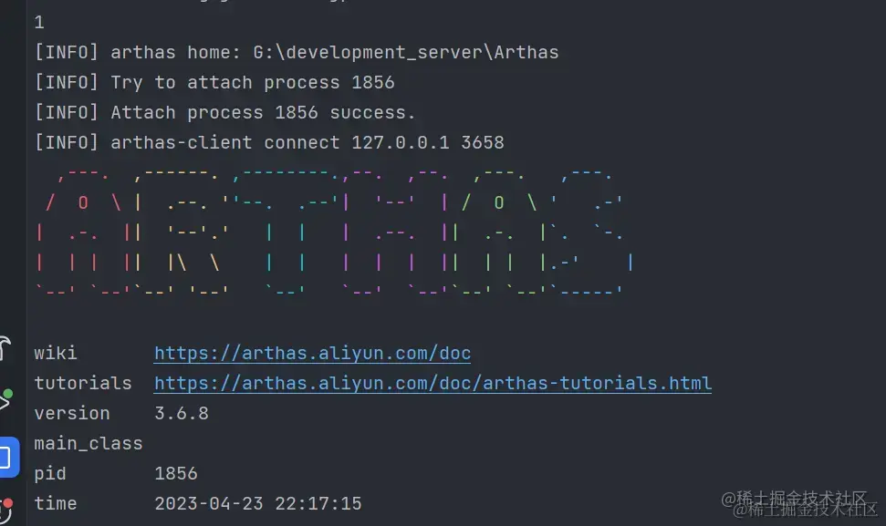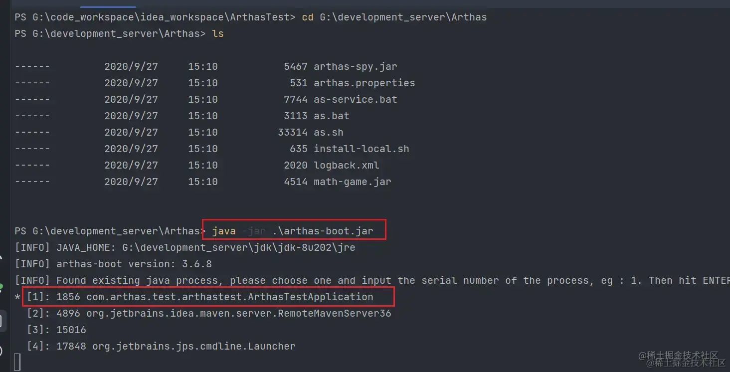 然后在IDEA或者命令行中执行arthas 选择我们的springboot项目