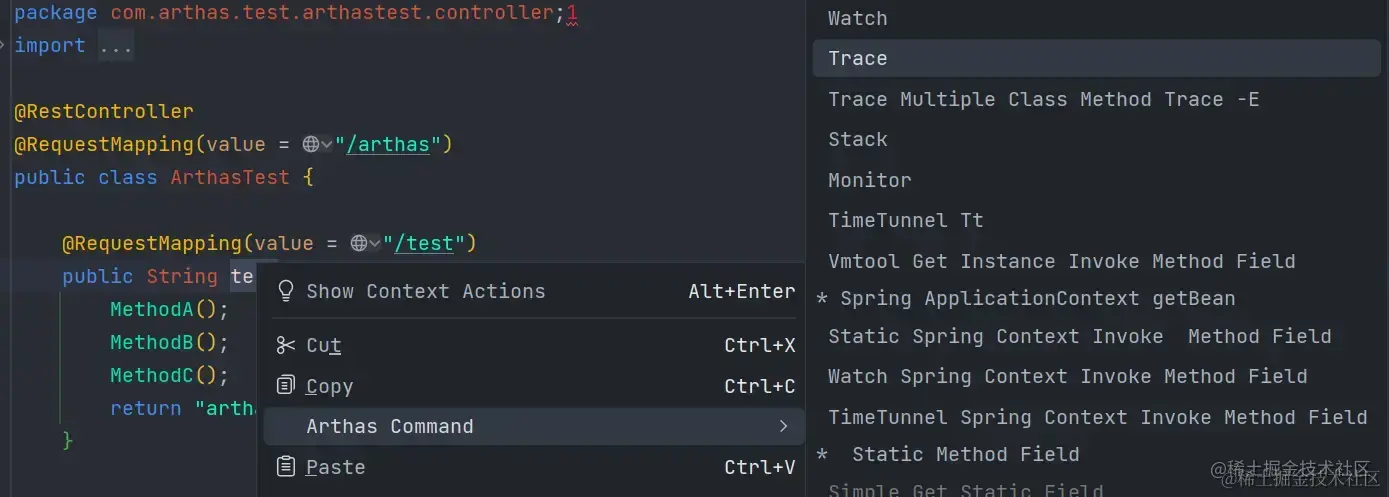 (这个是需要下载一个arthas idea的插件,要不没有)