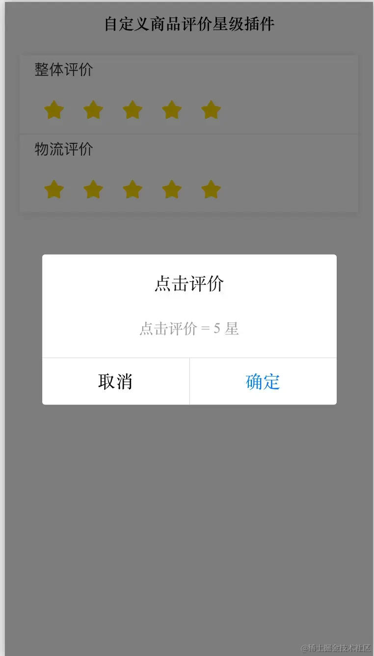 setStar和setStarTwo方法中编写评分事件的处理逻辑。当前示例中使用了uni.showModal方法来显示用户的评分结果,你可以根据需要修改或替换这部分代码。