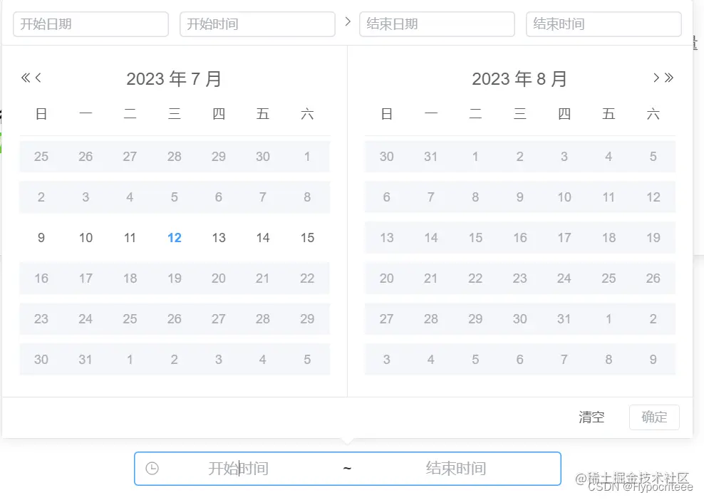 // 如果用户没有选择日期,那默认展示当前日的月份.选中日历日期后会执行回调,只有datetimerange才生效