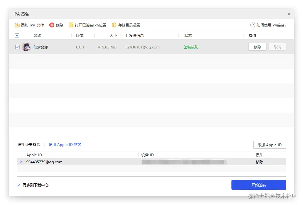 在爱思助手工具中搜索IPA,找到IPA签名,选择仙梦奇缘.ipa文件,填写自己的苹果账号,即可进行签名。
