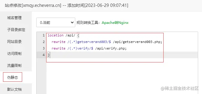 rewrite /(.*)getserverand003/$ /api/getserverand003.php;