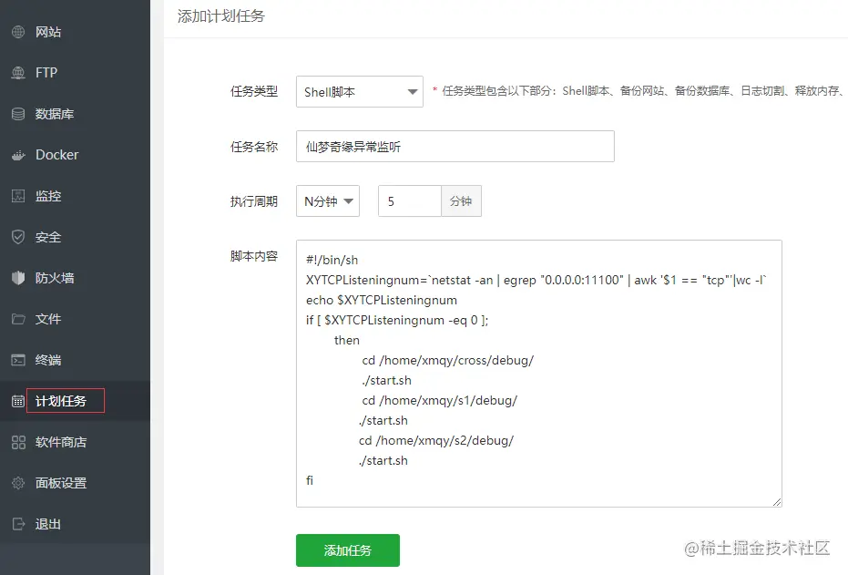 游戏如果端口异常服务中断,可以在宝塔计划任务中添加监听脚本。