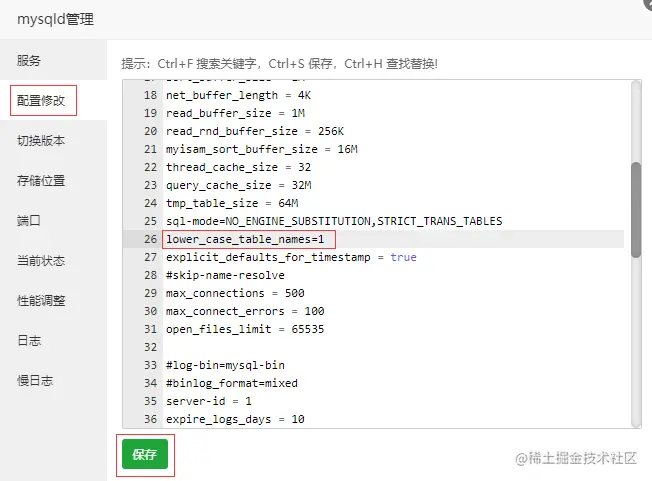 在宝塔软件商店 MySQL 5.6 设置配置修改中第 26 行添加: