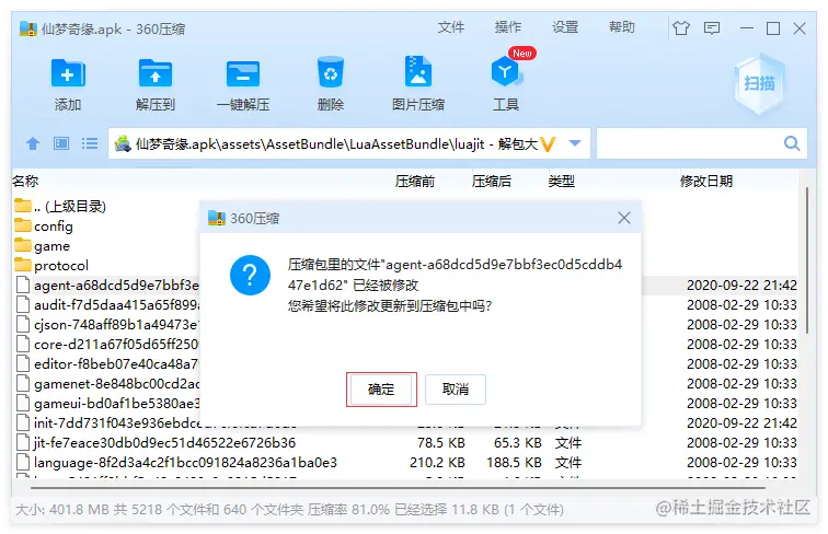 在资源客户端中找到仙梦奇缘.apk,使用360压缩软件打开,找到下面两个文件: