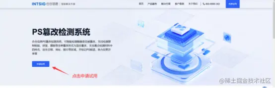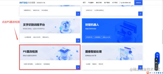 (1)打开合合信息官网:b.intsig.com/ocr,点击PS纂改检测