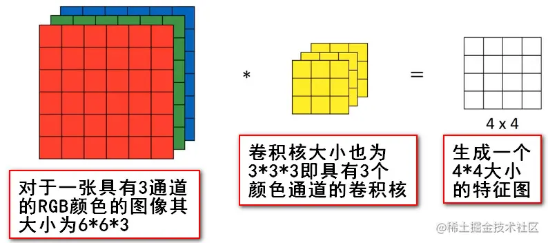 通过conv_layer.weight.shape查看卷积核的 shape 是(1, 3, 3, 3),对应是(output_channel, input_channel, kernel_size, kernel_size)。所以第一个维度对应的是卷积核的个数,每个卷积核都是(3,3,3)。虽然每个卷积核都是 3 维的,执行的却是 2 维卷积。下面这个图展示了这个过程。