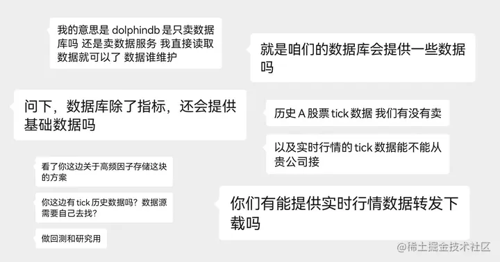 - 业务场景: 帮助用户实现通联数据的导入、清洗等操作,同时提供快速试用环境、C++ 以及其他高性能插件。DolphinDB 的一千多个内置函数算子满足了大多数量化场景。