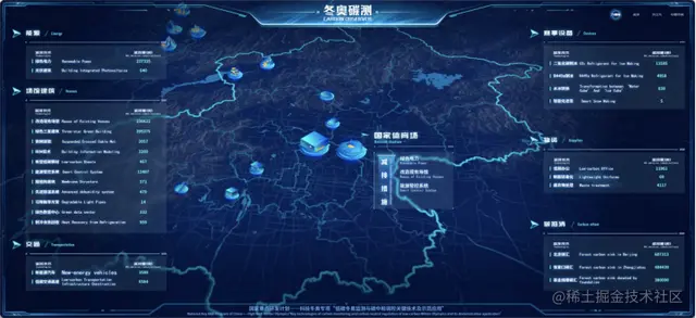 碳测平台全方位的展示了此次冬奥会的碳减成果,其中速滑馆采用了BIM数字化建造技术,放弃了冗余设计,用钢量节约了2800吨左右,采用的索网屋面可较传统建筑节约75%的钢铁,而水立方变“冰立方”的水冰转换这项技术带来了近850吨的减排量。团队评估了北京冬奥实施的30多项先进低碳技术和措施,总减排量达到95万吨左右。实现冬奥会碳排放数据多元采集融合与全景式管控交互,评估冬奥会对京津冀经济社会环境发展的联动促进效应。