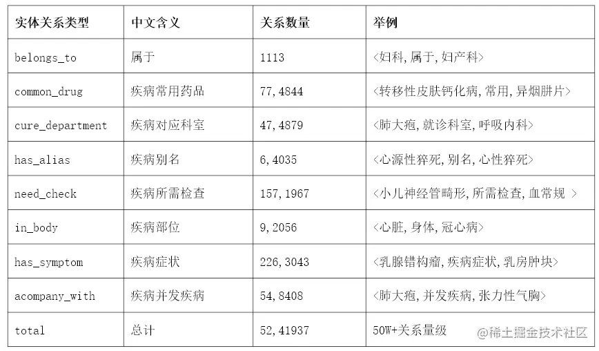 通过事先考察,我们发现在进行疾病诊断的过程中,不仅仅是以身体的症状为依据,也有许多其他的所属关系可供我们参考。因此在进行关系抽取中,我们将各个实体间的关系分为8类,分别为属于、疾病常用药品、疾病对应科室、疾病别名、疾病所需检查、疾病部位、疾病症状、疾病并发疾病。我们通过以上8类关系判断在知识图谱中实体间两两之间的关系,从而计算出患该种疾病的概率。定义知识图谱实体间关系的描述性统计特征如下表所示。