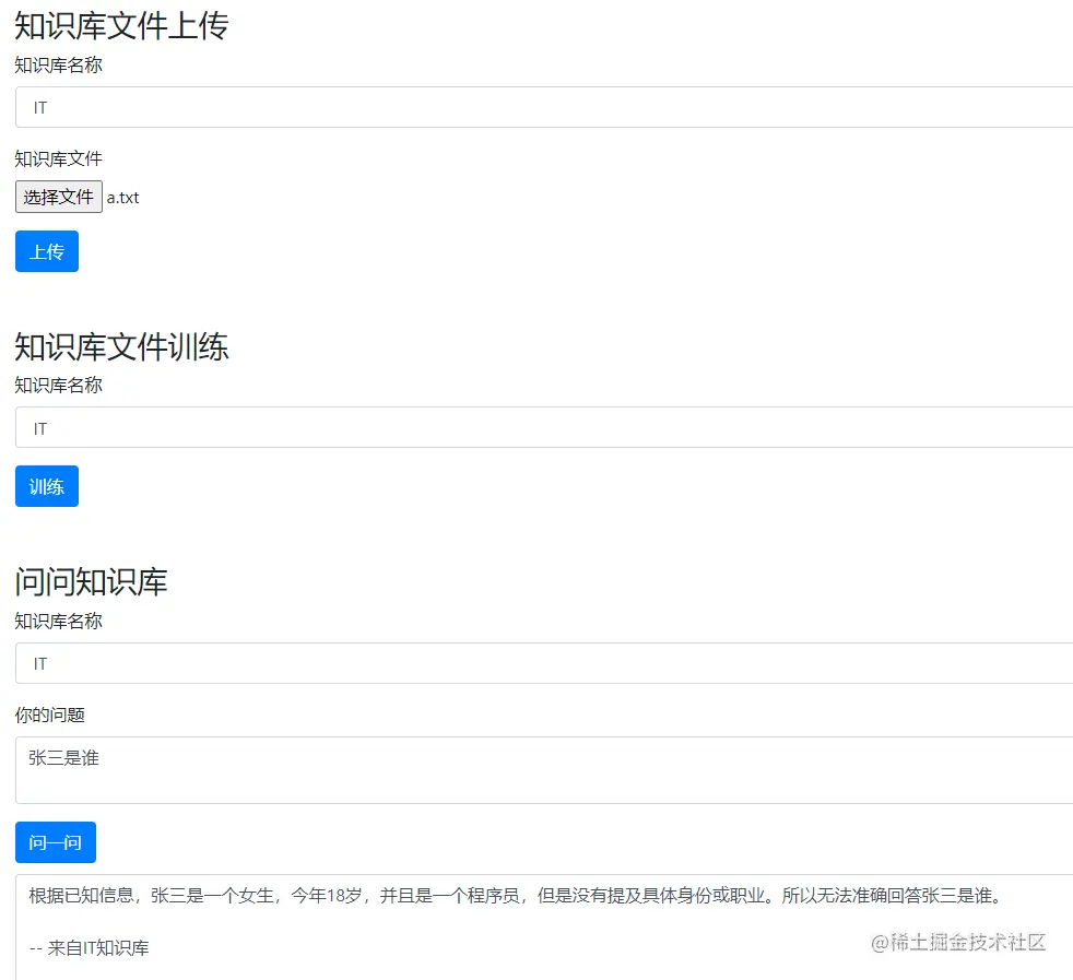 - 支持私有知识文件训练,并针对文件提问