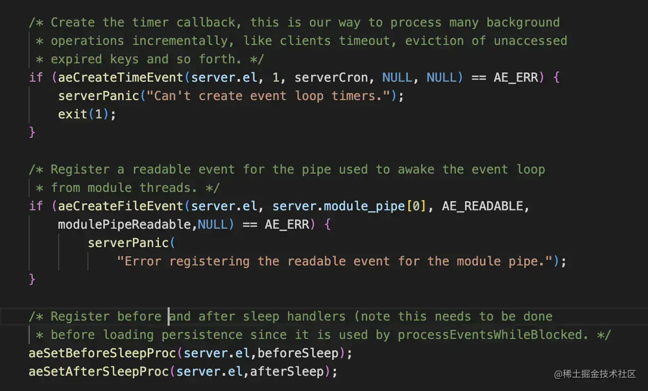 难道是没有调用serverCron()函数的逻辑吗 ?当然不是,我们继续往下看。