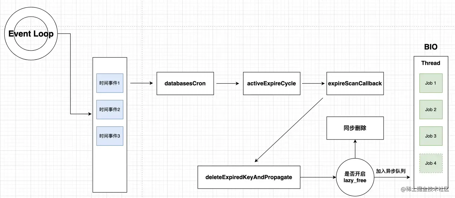 简单点说,就是Redis内部会有一种叫做事件循环的机制,它会按照一定规则定期触发时间事件的回调,达到触发过期Key删除的效果,下面会主要说下这部分的实现。