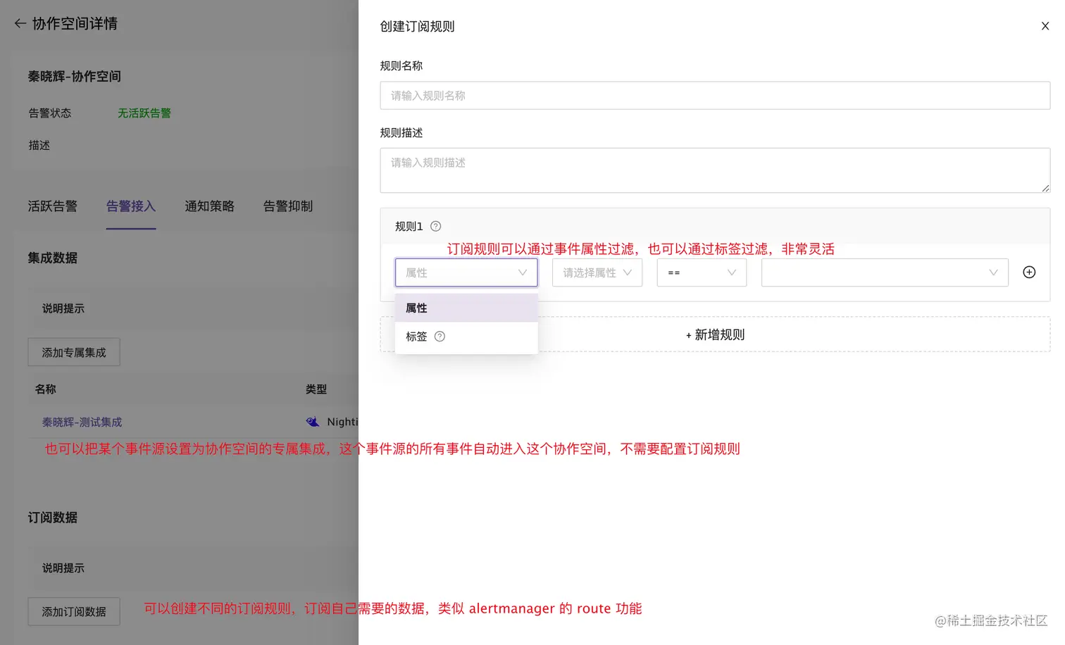 当然,也可以为协作空间创建专属集成,让某个些事件进来就直接进入特定的协作空间,无需订阅规则。两种路由方式的详细区别可以参考这篇文章:FlashDuty协作空间的设计逻辑和路由逻辑