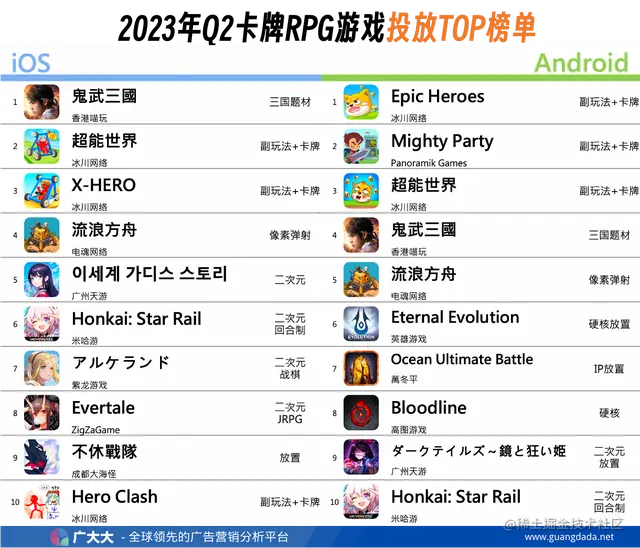 副玩法拯救“老手游” ,卡牌RPG 2023Q2新游表现突出