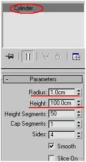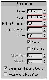 让我们在建筑物的顶端添加一个带有圆柱对象的杆子,其中包含以下参数。