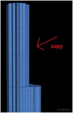 复制调整大小的建筑物并删除其中的一半,然后将其放置在建筑物的顶部。