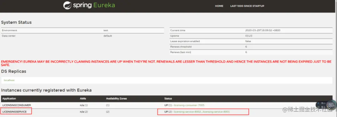 从该图可以直观看到licensingservice,拥有两个服务实例,并可以查看实例信息。