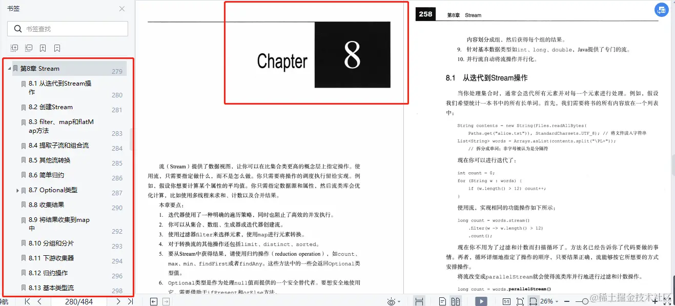 要从Stream中 获得结果,请使用归约操作( reduction operation),如count、max、min. findFirst或 者findAny。这些方法中的一些会返回optiona1类型值。