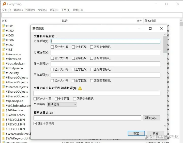 通过访问 NTFS 文件系统的 USN 日志,在数秒内检索完成几 TB 大小硬盘中的文件,并实时监测所有文件的增改情况。你可以通过正则表达式进行文件精确匹配,或使用更加直观的高级搜索功能,所有结果都可以近乎实时显示。
