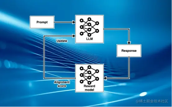 在最后阶段,创建了强化学习循环。主要大型语言模型的副本成为强化学习代理。在每个训练集中,大型语言模型从训练数据集中获取几个提示并生成文本。然后,它的输出被传递给奖励模型,奖励模型提供一个分数来评估其与人类偏好的一致性。大型语言模型随后被更新,以创建在奖励模型中得分更高的输出。