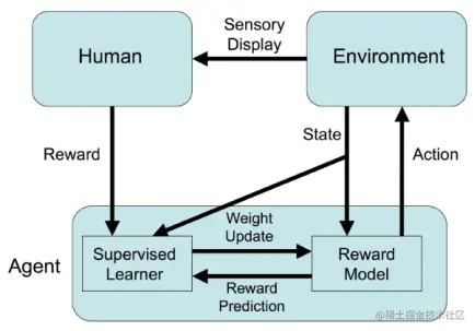 因此,大多数RLHF系统依赖于自动化系统和人工提供的奖励信号的组合。计算奖励系统为强化学习代理提供主要反馈。人类管理者或者偶尔提供额外的奖励/惩罚信号,或者提供训练奖励模型所需的数据。