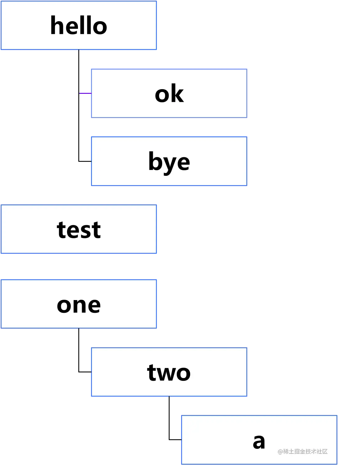 如题目描述中图所示,最大嵌套级别为3。嵌套级别为1的评论是"hello test one”,嵌套级别为2的评论是"ok bvetwo",嵌套级别为3的评论为"a"。