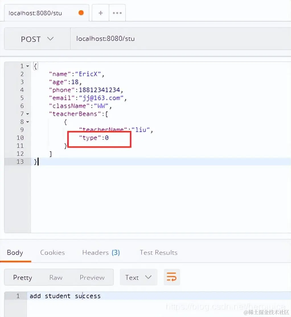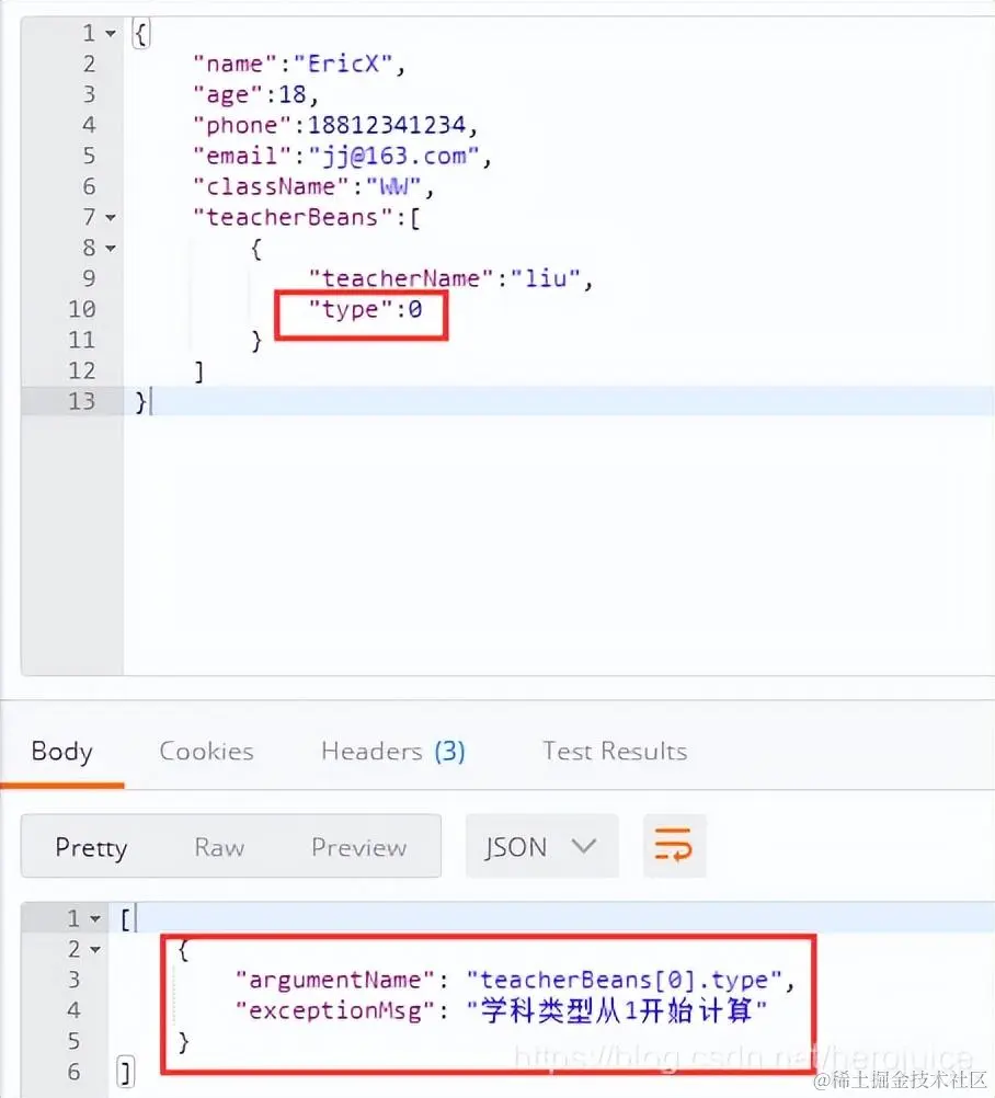 这里对teacherBeans只校验了NotNull, 和 Size,并没有对teacher信息里面的字段进行校验,具体测试如下: