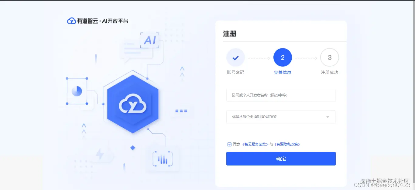 1.进入有道智云主页,注册自己的账号(手机号验证码),完善信息随意填