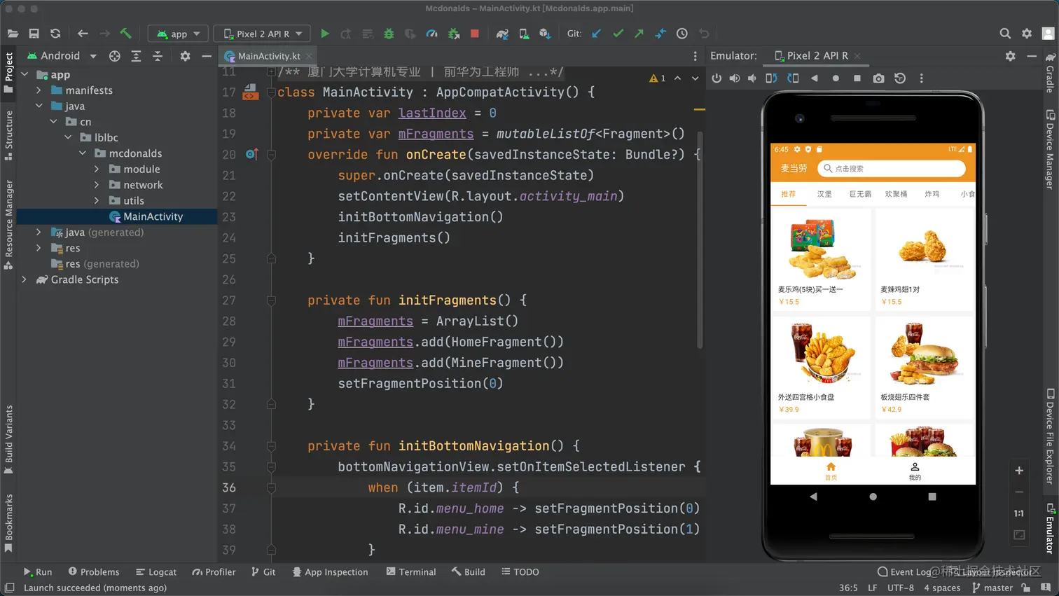 有个大学生粉丝最近私信联系我,说基于我之前开源的多语言项目做了个仿麦当劳的项目,虽然只是个样子货,但是收获颇多,希望把自己写的代码开源出来供大家一起学习进度。这个小伙伴确实是非常积极上进,很多大学生,即使是计算机专业的,到毕业时都写不出一行代码,这个小伙伴是学历史的,竟然能做完这么多东西,着实可以的。本系列就分享一下他的作品,共勉。