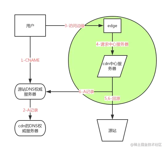 每次访问的具体流程如图(以最普通的CDN为例)