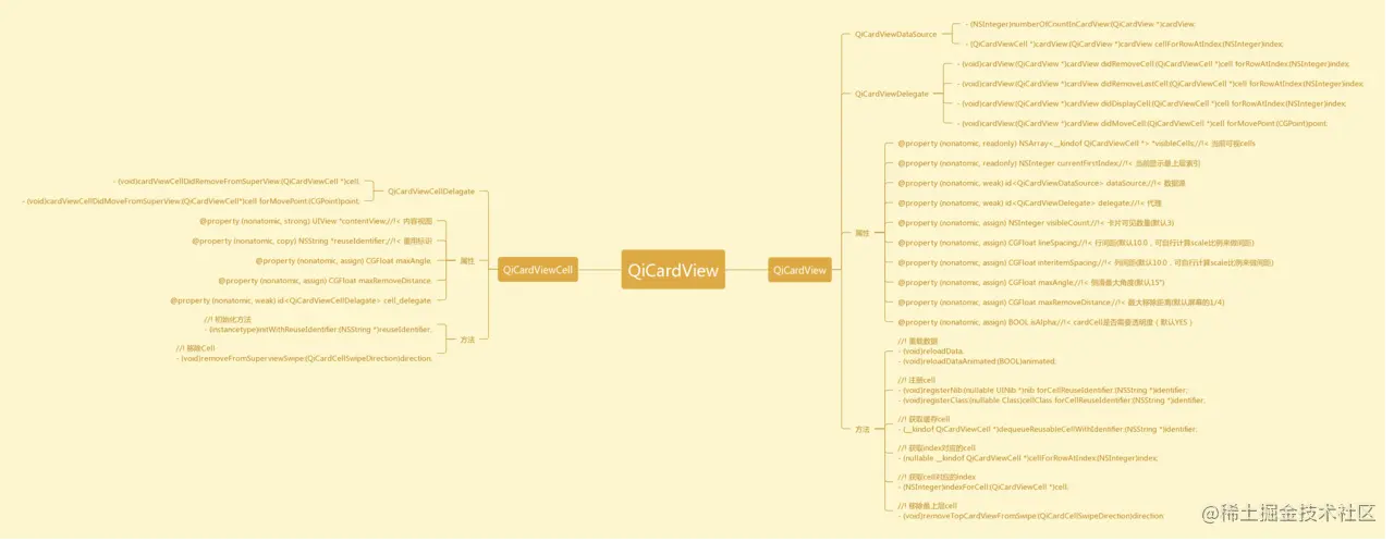 QiCardView下有两个代理:QiCardViewDataSource、QiCardViewDelegate。(与UITableView的代理方法类似)QiCardViewCell下有一个代理:QiCardViewCellDelegate。(这个代理可以不关心,主要目的是辅助QiCardView里的一些处理逻辑)