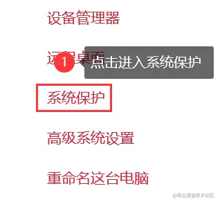 - 点击【系统】选项,然后选择 【系统保护】 ;