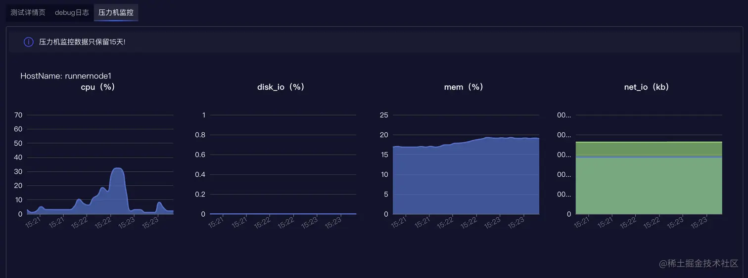 实时查看测试报告:支持实时查看压力机情况、debug日志。测试报告可发送至指定邮箱。