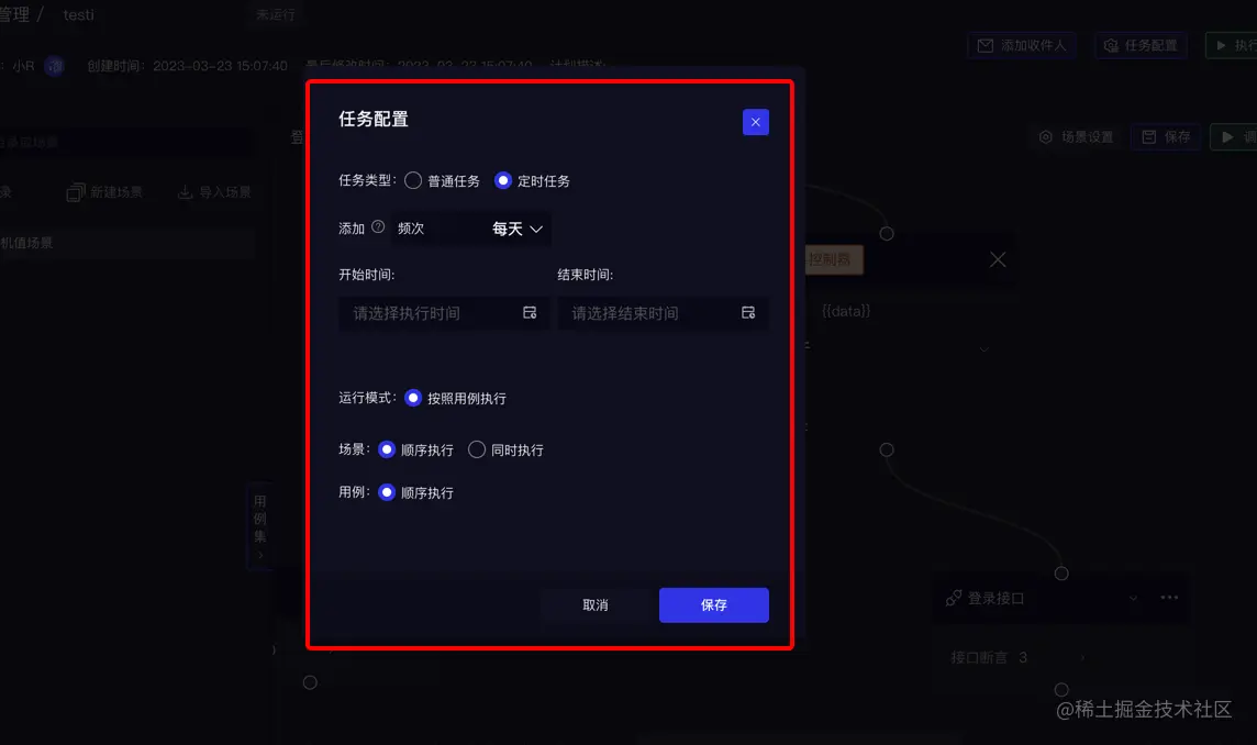 预设配置+场景管理:可以根据性能需求预先配置好性能参数,直接导入调试好的测试场景和预设配置就可以配置好一条性能测试用例。