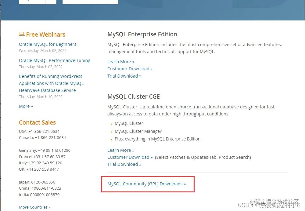 ✨ 2,往下翻,找到MySQL Community (GPL) Downloads >> ,点击进入。