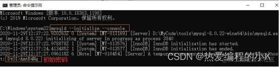 ✨ 4,输入 mysqld --initialize --console 初始化,记一下初始密码哦~