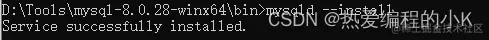 ✨ 3,输入 mysqld --install 安装mysql服务,移除服务的命令是 mysqld --remove