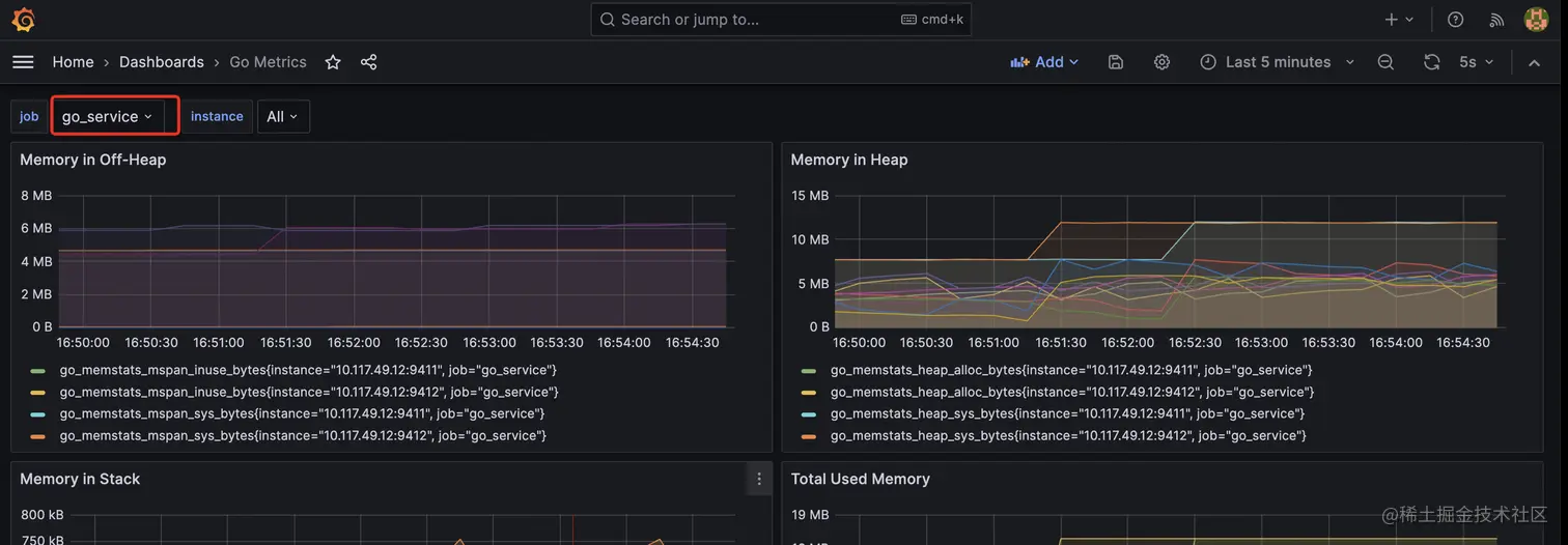 首先我们在搜索界面搜索Go Metrics,注意选择链接,即ID号是13240,这个可以fitler by job and instance。