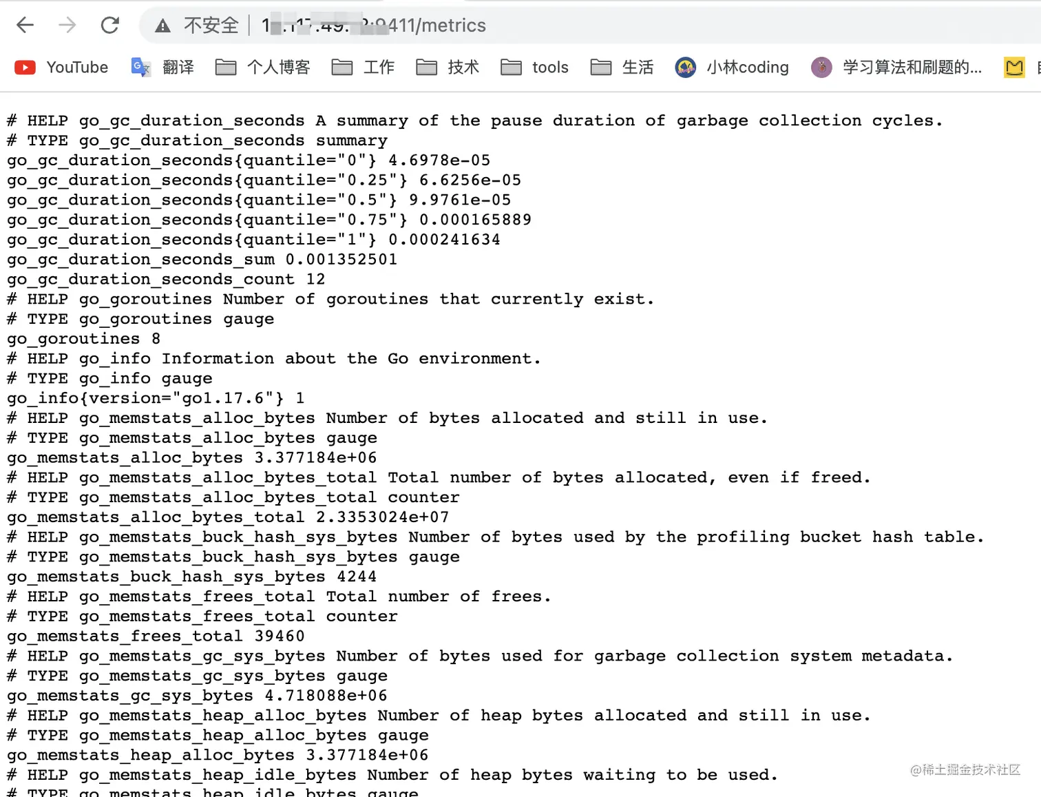 然后我们只需要运行这个程序,就可以在http://localhost:9411/metrics看到收集的数据:
