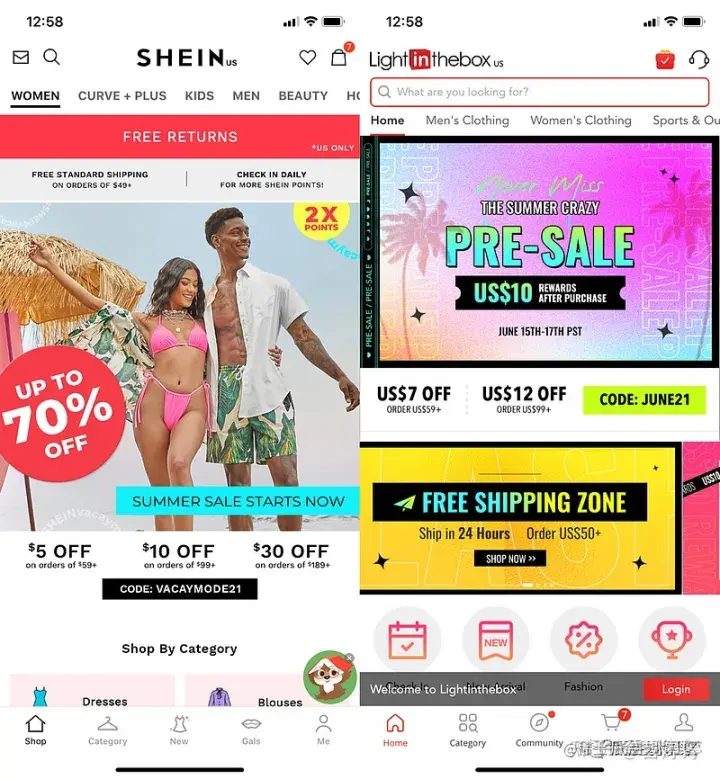左图为SHEIN右图为lightinthebox