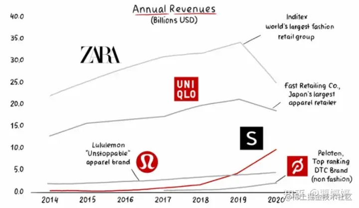 2020年SheIn完成了近100亿美元的销售,相较2019年的45亿美元有大幅增长。与此同时,由于疫情的影响,全球的民众都无法到线下实体店进行购物,Zara和优衣库的收入则出现了下滑。