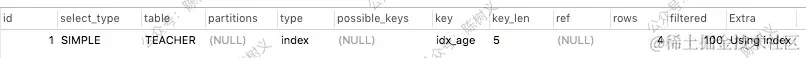 查询中若使用了覆盖索引(查询的列刚好是索引),则该索引仅出现在key列表。