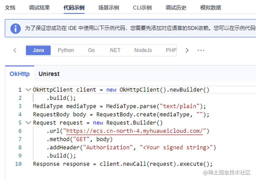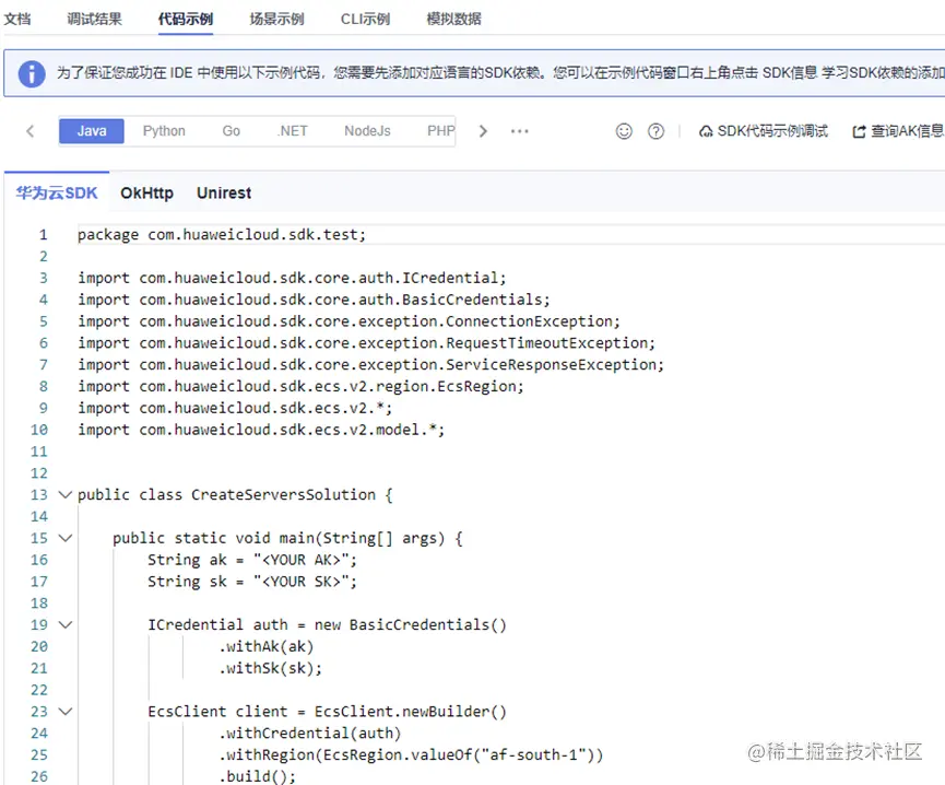华为云全新设计的SDK V3版本,提供统一的SDK使用方式。开发者可通过添加依赖或下载的方式调用华为云****API ,访问华为云应用、资源和数据。SDK为开发者提供详细的代码示例,便于开发者快速集成、快速开发。