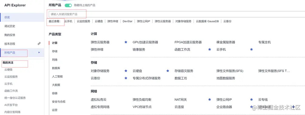华为云API Explorer的API在线搜索功能,可帮助开发者快速检索,支持开发者基于 API Explorer 全局搜索云产品服务或API,同时支持开发者按产品搜索 API。开发者在登录后,也可通过API Explorer门户快速查看****最近搜索/ 使用的产品或API。开发者也可在API Explorer上关注常用产品API。