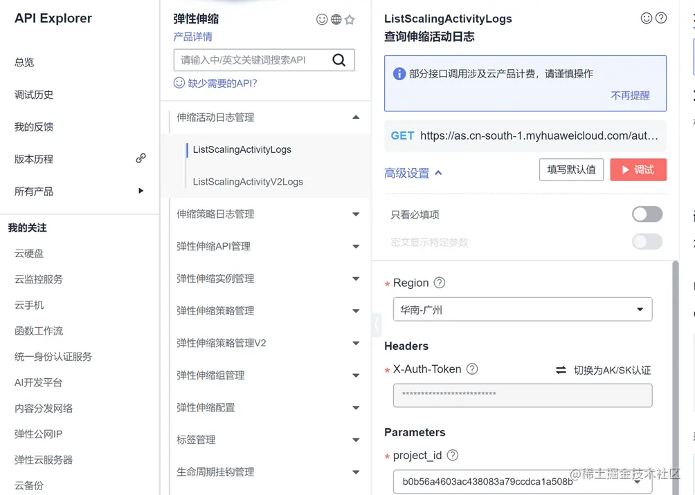 API Explorer支持常用YAML 定义参数表格化、可视化,可见即得的参数描述及示例说明,可帮助开发者快速理解参数结构,并支持开发者在线可视化调试 API , 并可根据自动获取的错误码详情,快速定位问题、解决问题,从而提高开发效率。在全新升级的API Explorer中,开发者在登录状态下,可自动获取****Region 、Token 、Project_id 参数值,避免开发者人工查找,提高调试效率。