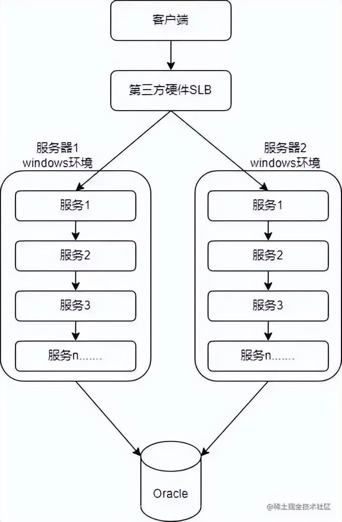 相对传统的一个负载均衡运行架构。系统建设时间比较早(2016年),没有分布式框架,就是传统的SpringMVC+Mybatis架构,并且服务器都是基于Windows Server 2008的。
