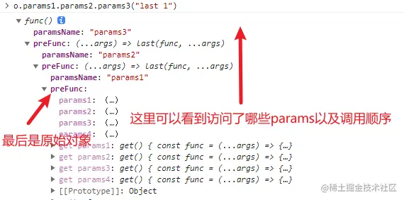 ,每次访问属性时,都将返回一个函数 - 这个函数的原型链上需要挂载这个原始对象,实现链式调用